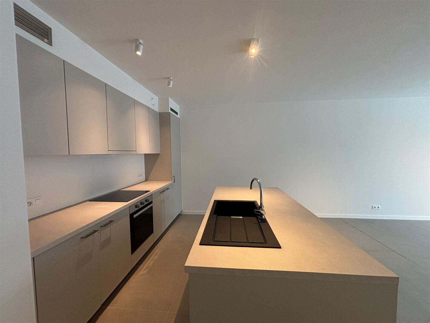 L’appartement offre un vaste et lumineux séjour avec une cuisine ouverte moderne, réalisée avec des matériaux de qualité et intemporels. Les grandes baies vitrées assurent une agréable luminosité naturelle et une connexion fluide avec la terrasse et le jardin.
