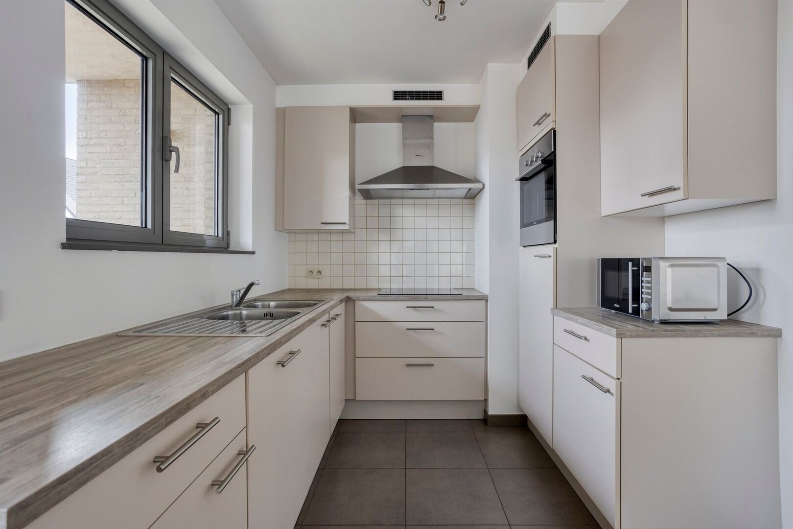 L'appartement a une surface habitable de +/- 94 m² et est situé dans la résidence « Kouterwind » au premier étage (ascenseur et escalier disponibles).