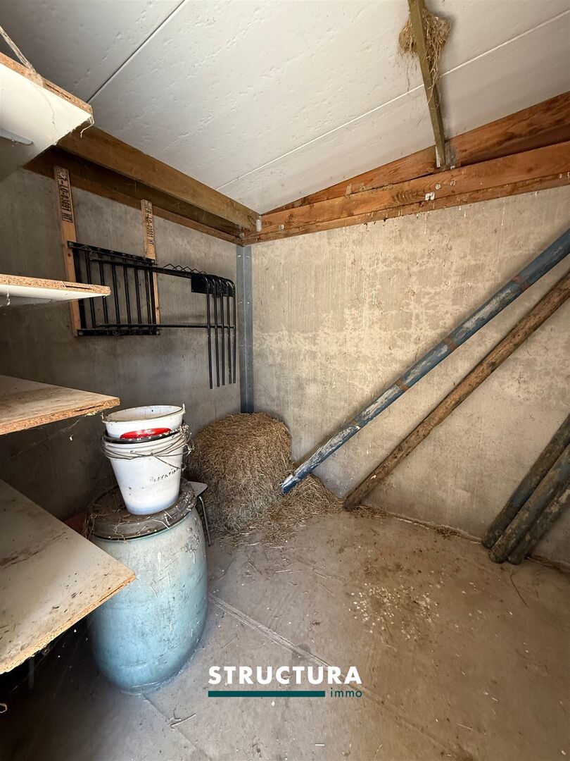 À l’extérieur, vous profitez d’un cadre magnifiquement aménagé avec une écurie, une prairie et une piste pour chevaux, idéal pour les amateurs d’équitation.