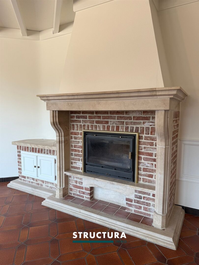 Vous êtes accueilli dans un séjour lumineux avec un poêle fonctionnel et chaleureux.