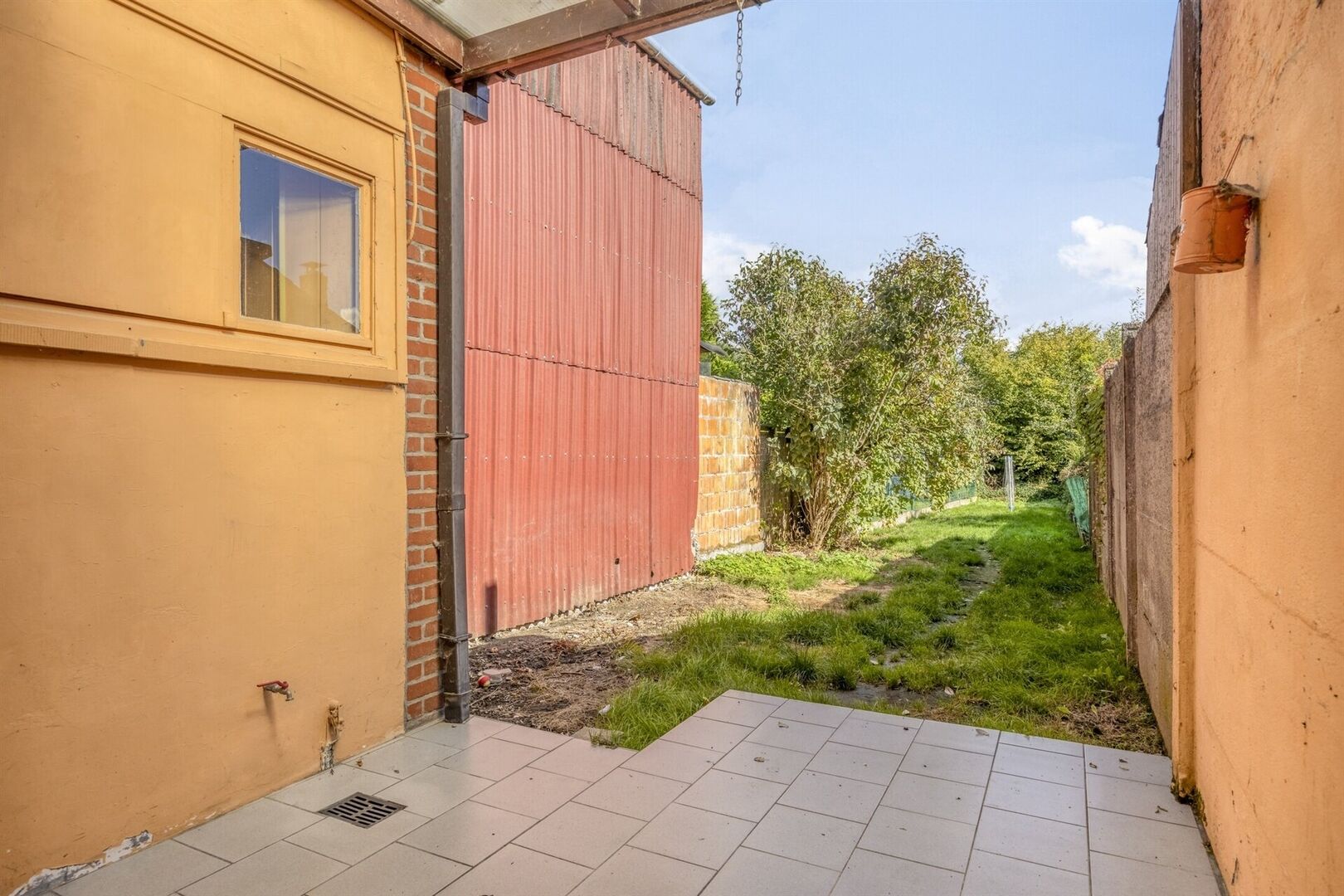 Accès au jardin avec terrasse couverte.