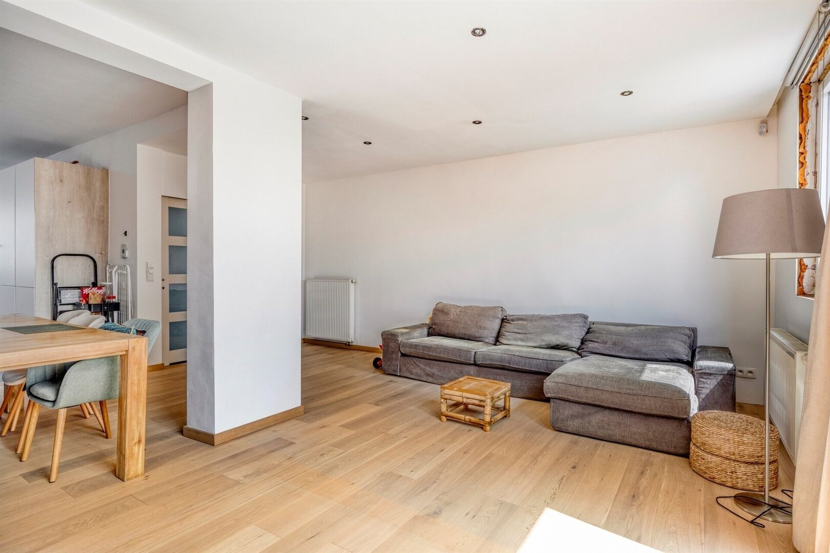 Dès l’entrée, vous êtes accueilli dans un hall soigné avec WC invités. Le séjour spacieux bénéficie d’une belle luminosité grâce aux grandes fenêtres et à la porte coulissante qui mène à la terrasse et au jardin. Dans le prolongement, vous trouverez une agréable salle à manger et une cuisine moderne entièrement équipée, dotée d’appareils de qualité et de nombreux rangements.
