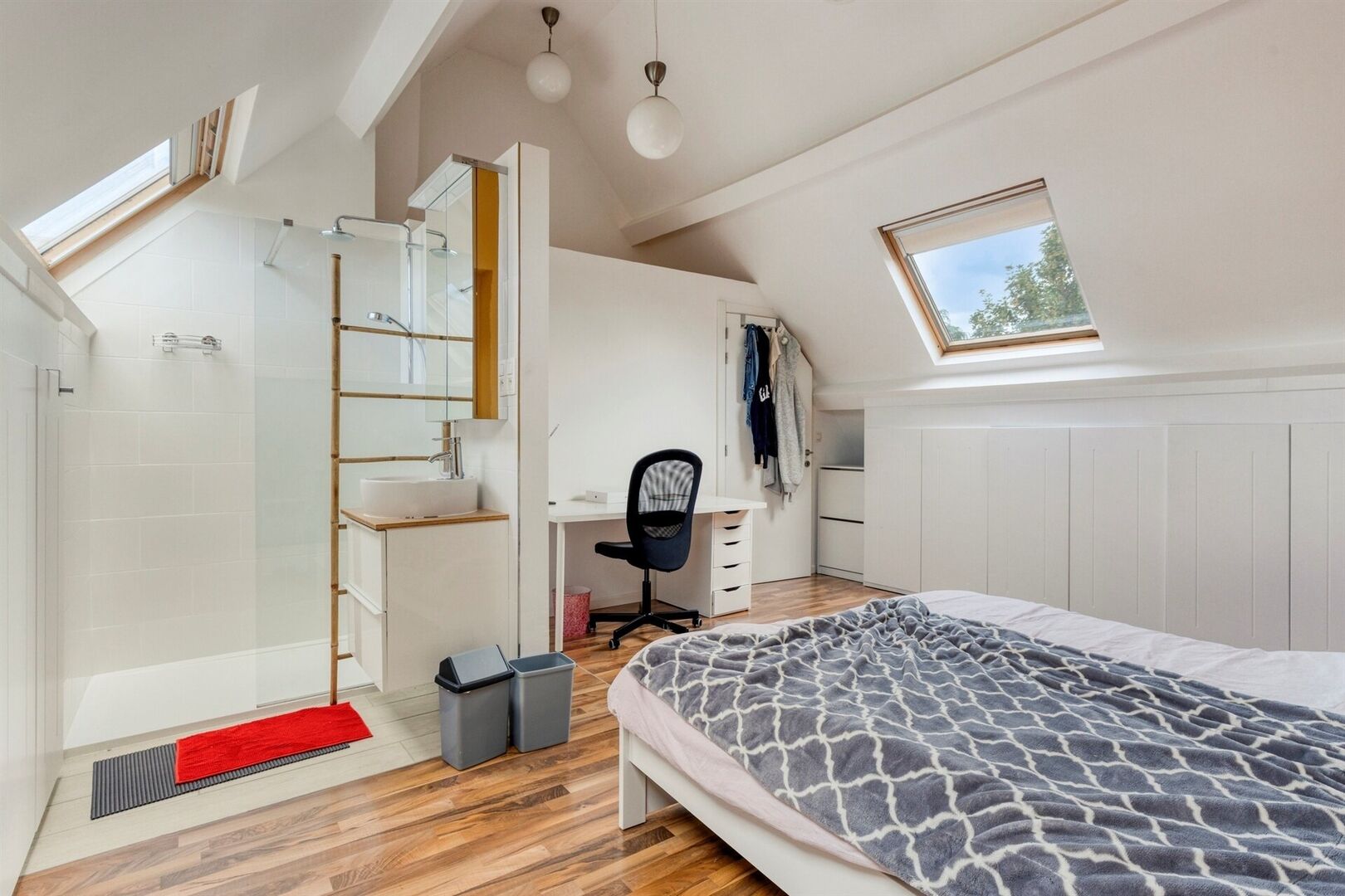 Le grenier a été entièrement aménagé en troisième chambre avec une salle de douche privative, idéale comme suite parentale ou comme studio pour adolescent ou invités.