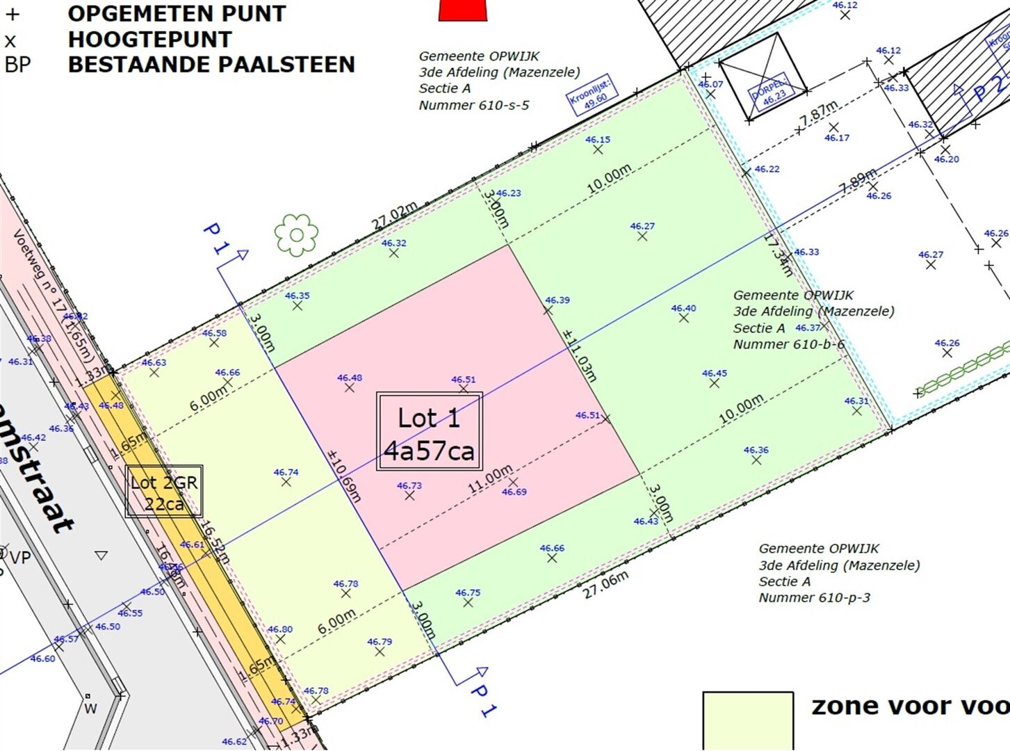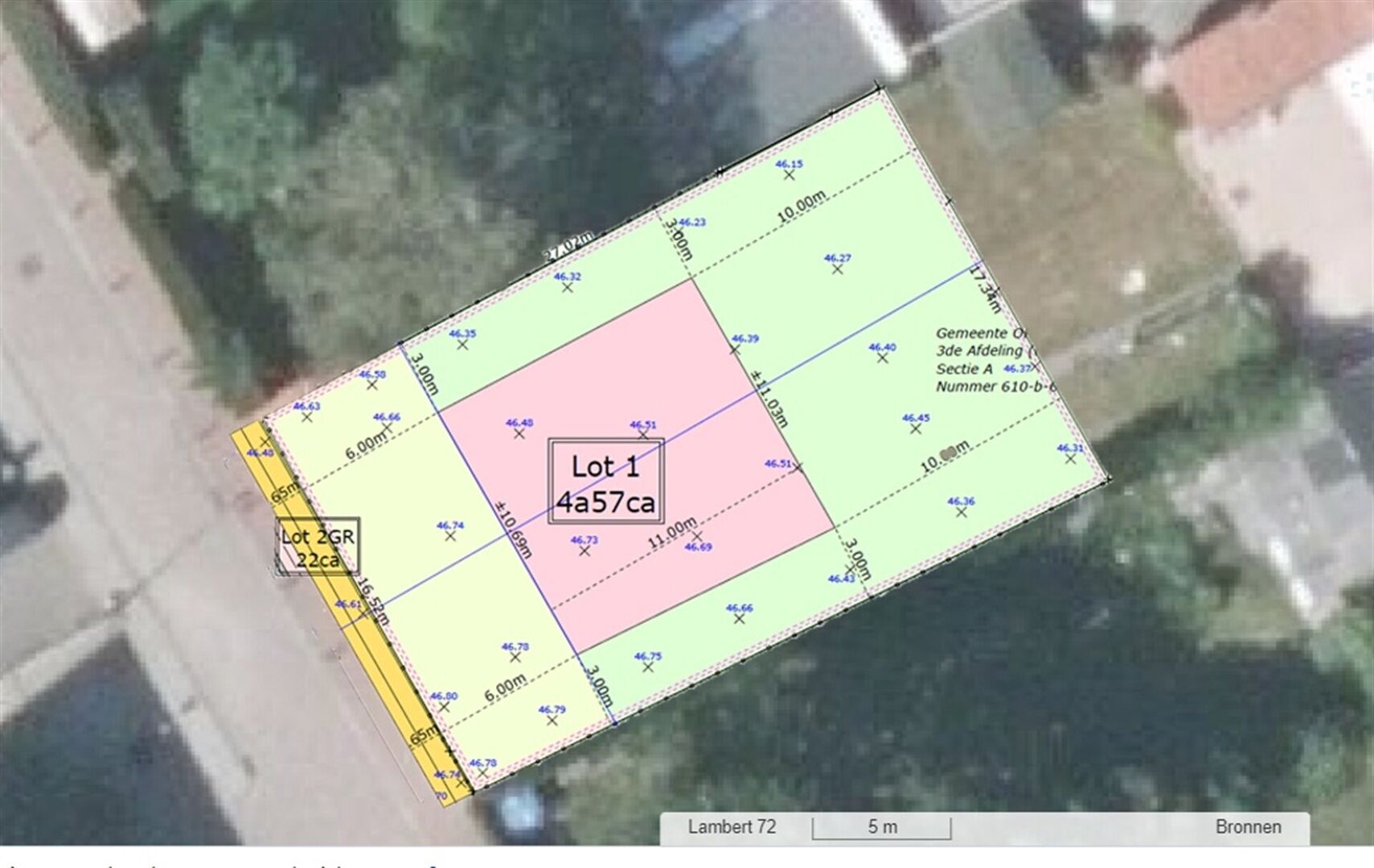 La largeur maximale de la façade est de 10,69 m. La profondeur de construction autorisée pour le rez-de-chaussée et l’étage est de 11 m.