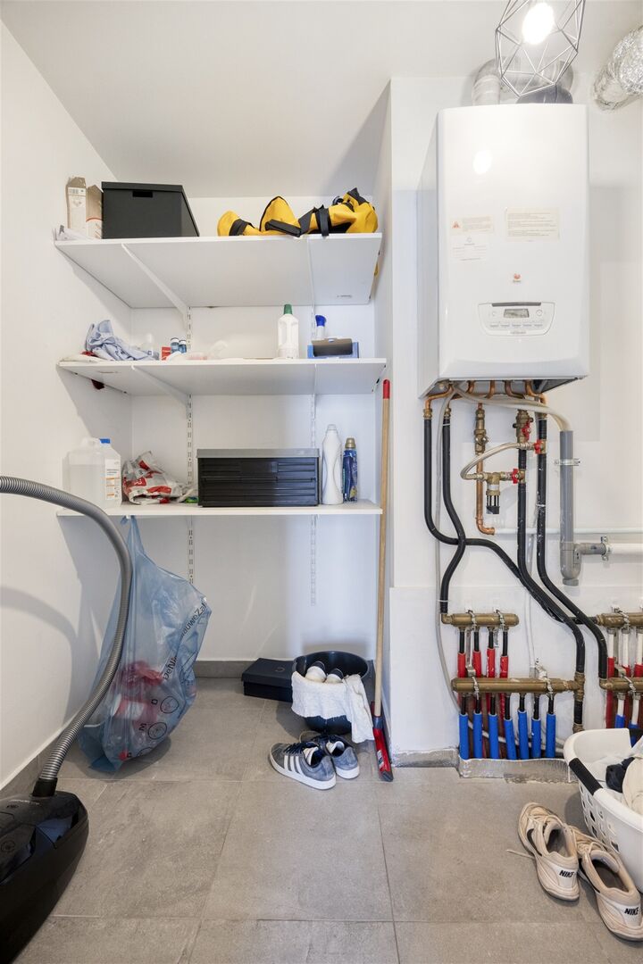 Op de ondergrondse verdieping is een staanplaats en privatieve kelderberging, verplicht bij te kopen aan €20.000.