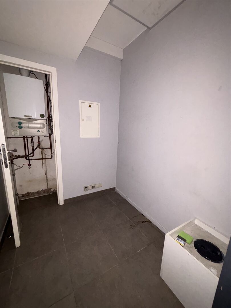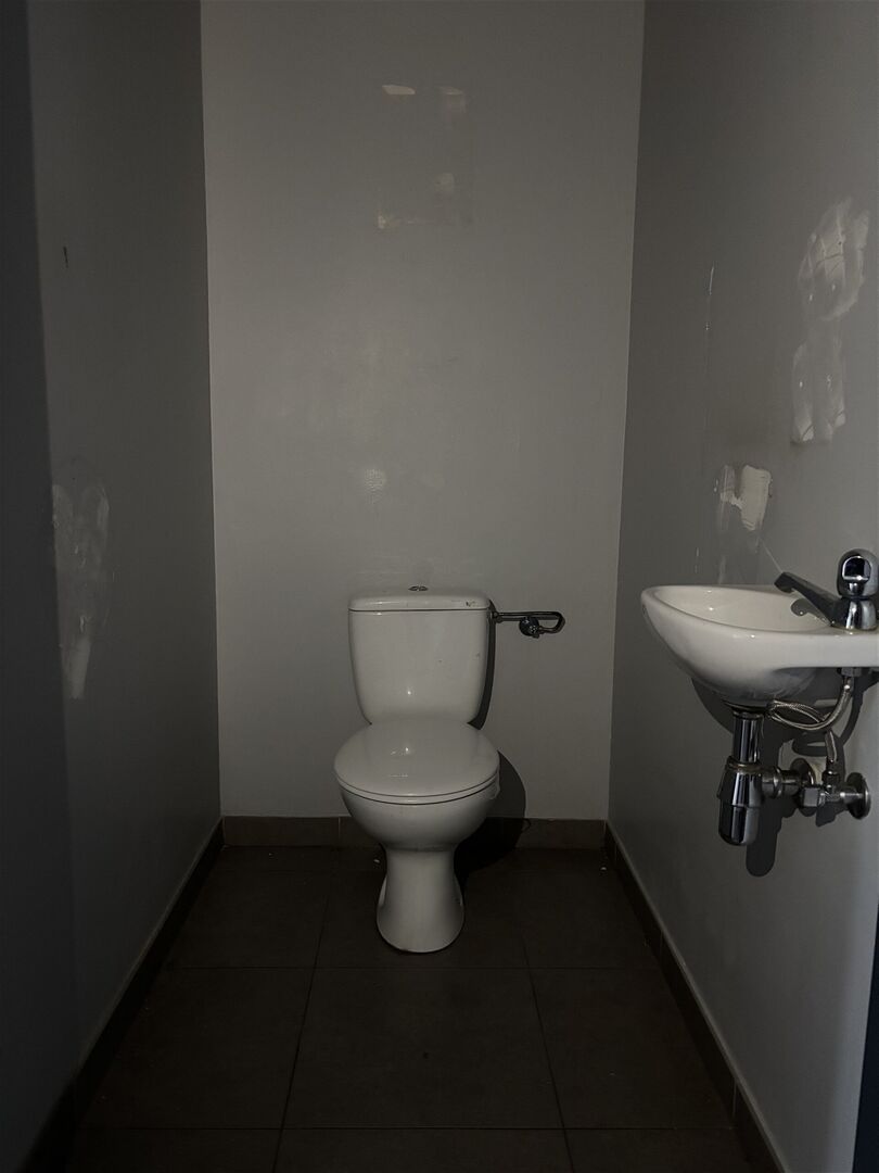 De kantoorruimte biedt een open en flexible indeling met een totale oppervlakte van 120m². Het interieur beschikt over enkele voorgemaakte ruimtes, waaronder faciliteiten met toilet en wastafel. De ruime vloeroppervlakte met tegelvloer en afgewerkt plafond biedt volledige vrijheid voor verschillende inrichtingen afhankelijk van uw bedrijfsbehoeften.