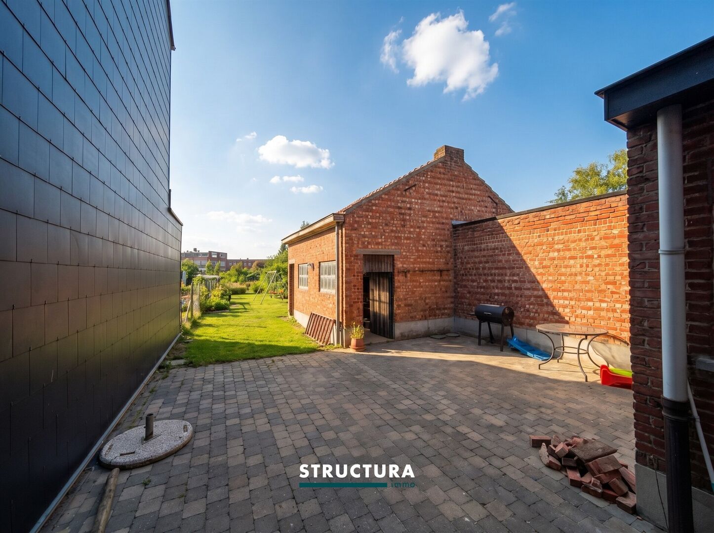 - Omheinde tuin met terras en schuur