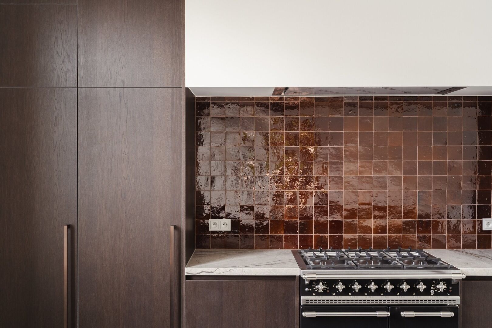 De volledig uitgeruste keuken beschikt over premium toestellen en een exclusief Lacanche-gasvuur als absolute blikvanger voor kookliefhebbers. Aansluitend bevindt zich een praktische berging met extra koelkast en diepvries, toegankelijk zowel via de woning als rechtstreeks van buiten via een deur met codeklavier.