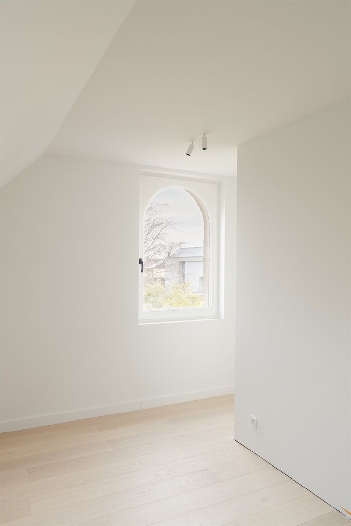 Op de bovenverdieping bevindt zich de luxueuze master suite met hotelallure. Deze royale ruimte omvat een ruime dressing en een stijlvolle ensuite badkamer met vrijstaand bad, inloopdouche en dubbel lavabomeubel. Ook de technische ruimte is hier discreet geïntegreerd.